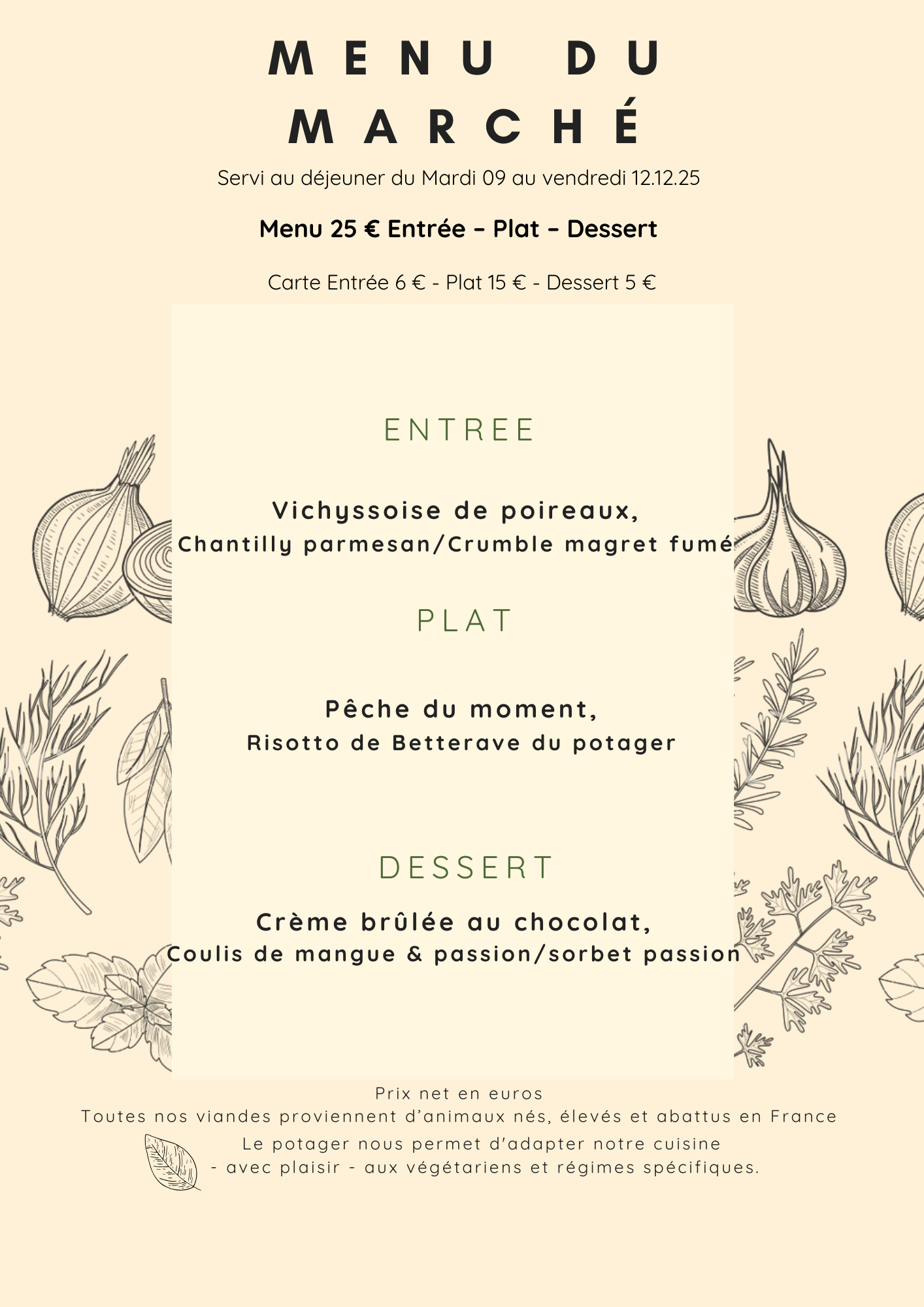 Menu du Marché